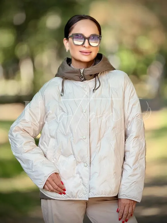 Жіноча куртка демісезонна з утеплювачем rayon Молочний/Хакі