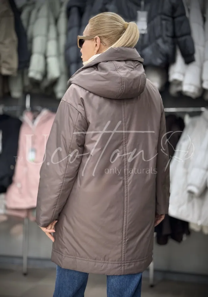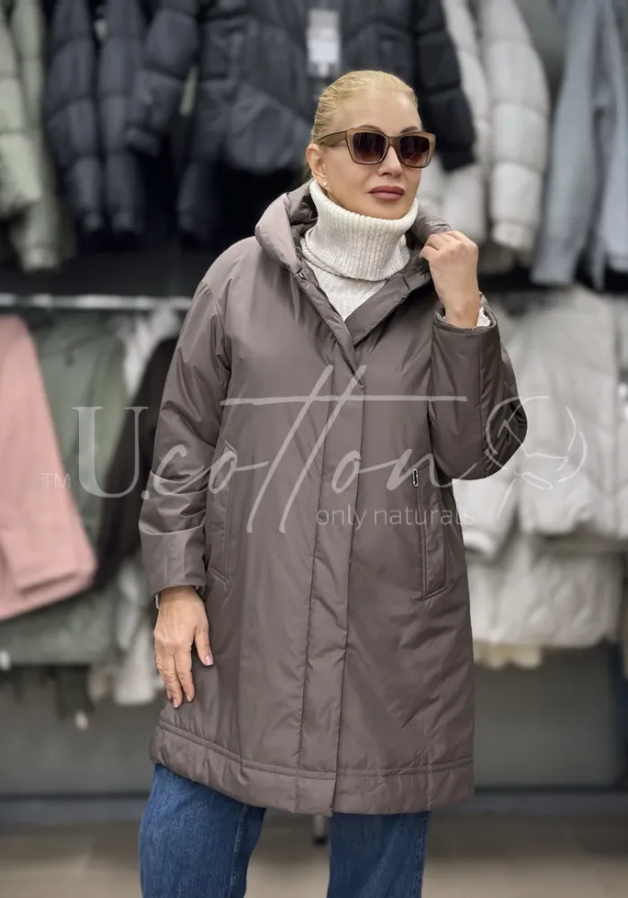 Куртка жіноча демісезонна подовжена з капелюхом Пустельна Квітка (Мокко)