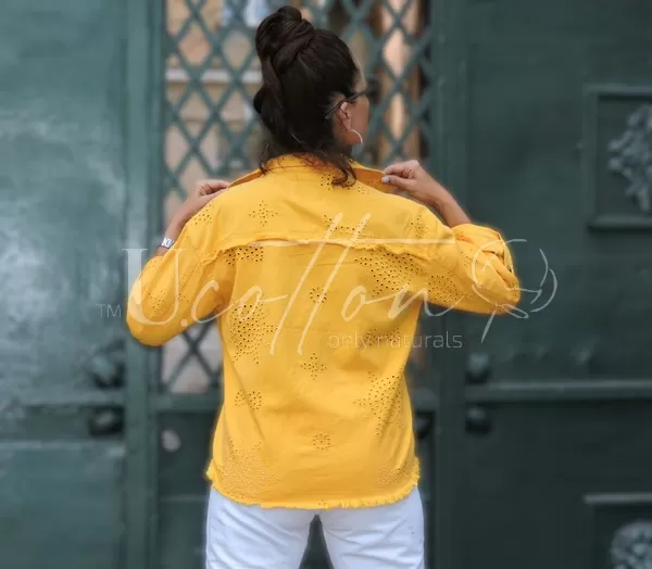 Сорочка натуральна джинсова з вишитою квітковою перфорацією Сanarian Yellow