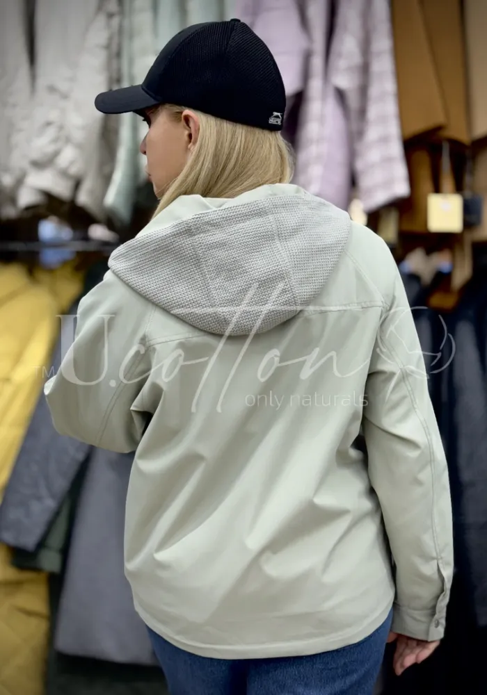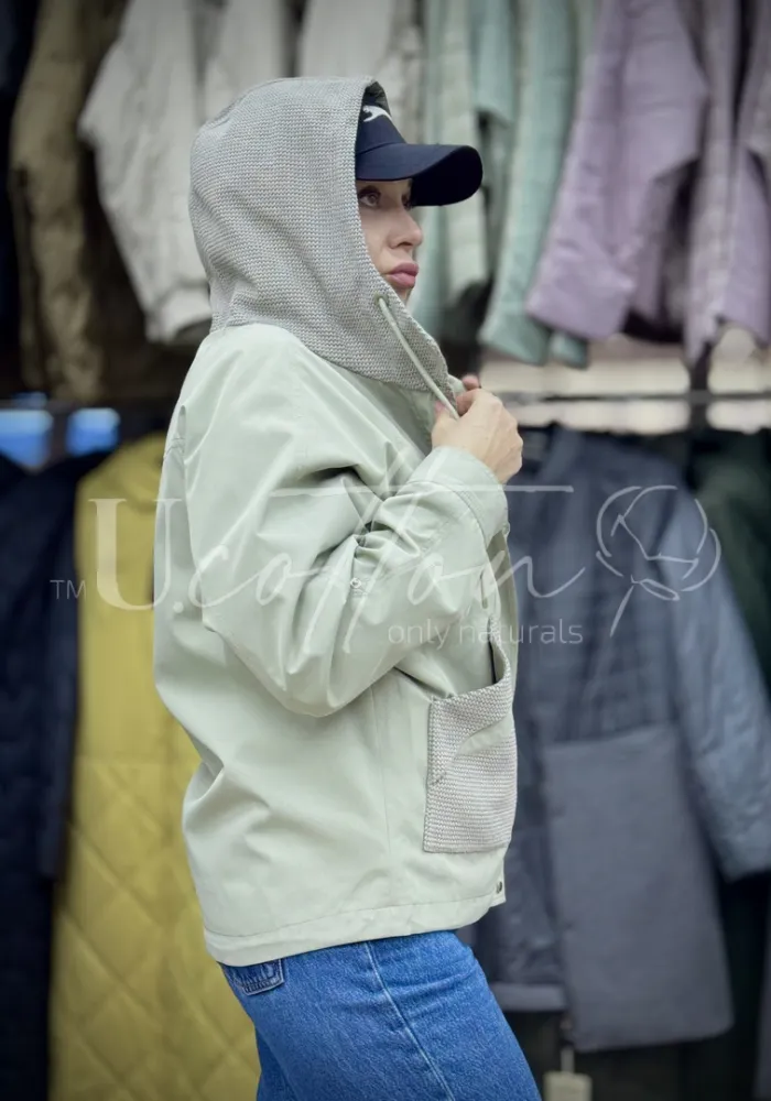 Вітровка (куртка) водонепроникна коротка з кишенями та капюшоном із саржі 1198 світло-зелена Рання М'ята