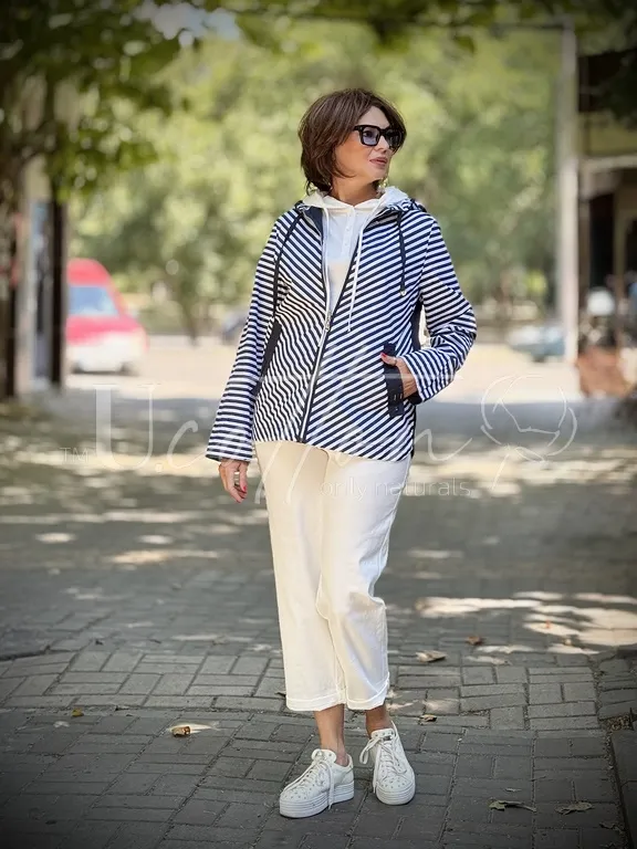 Стильна вітровка-куртка Морячка темно-синьо-біла - хіт коттонової колекції від бренду Ю.Коттон.