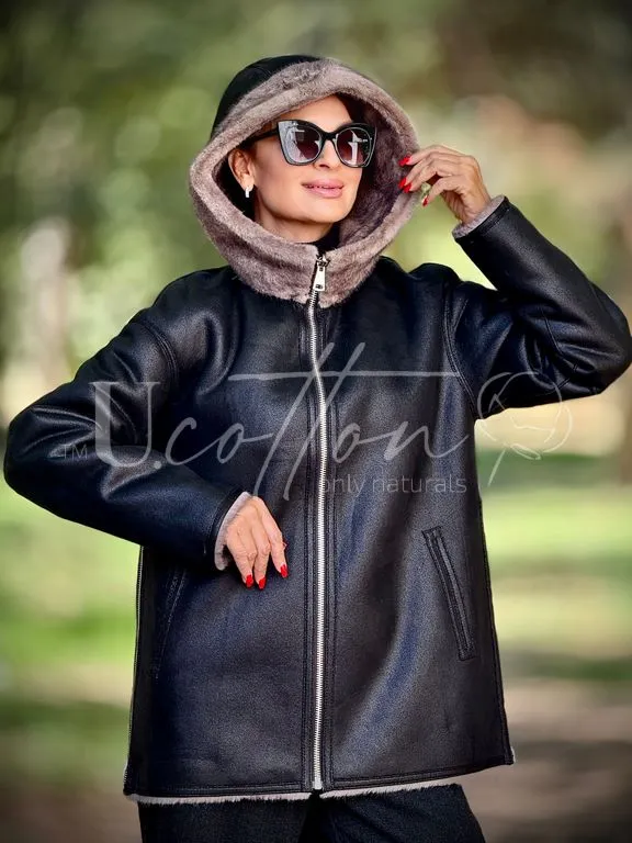Двостороння шуба-дублянка трансформер чорна екошкіра/еконорка Milk Chocolat