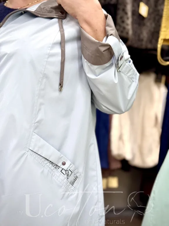 Жіночий одяг з якісної щільної плащівки - спеціалізація бренду U.Cotton. Майже 20 років ми поєднуємо високу якість тканин, природність і високі технології, щоб українські жінки не мали дилеми між зручним і стильним, корисним і ефектним. Найважливіша особливість моделі - тканина: це водонепроникна мембрана, яка на поверхні збирає воду у каплі і відштовхує їх. Якщо ви забули парасольку, то за наявності такого плаща, вам точно не загрожують опади - ви можете посміхатися і вражати перехожих стилем та настроєм! Окрім цього, тканина м'яка, тактильно приємна і. що важливо, вона дихає - не пропускаючи воду, вона пропускає повітря, створюючи ваш екологічний простір і відмінне самопочуття на тривалий час!
