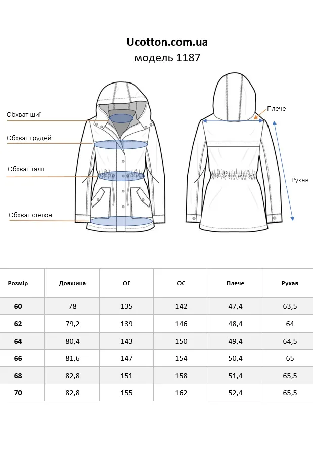 Бренд Ю. Коттон представляє демісезонну модель 1187, яка не залишить байдужими модниць із формами - це куртка тренч (короткий плащ, вітровка) з щільної водовідштовхувальної, непроникної тканини (якісної плащівки), яка захистить вас від сезонної негоди, опадів і бруду і водночас додасть сучасного шику до вашого образу, родзинкою іміджу, стане важливою частину вашого базового гардеробу