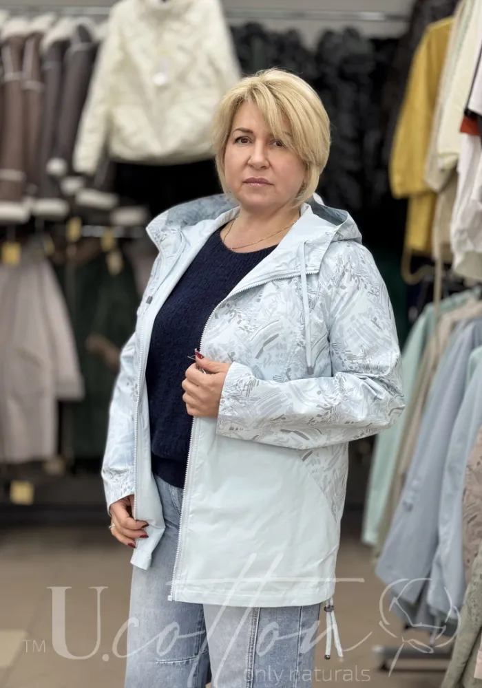 Двохстороння вітровка (куртка) з водовідштовхувальної плащівки - модель 202 - поєднує акцентний стильний футуристичний малюнок з однотонною тканиною стриманої яскравості. На один бік переважає однотонна тканина. а текстурний паттерн працює декором, навиворіт - це романтична річ з ефектним забарвленням. З обох боків плащівка водонепроникна - каплі дощу падають на її поверхню, збираються у кульку і просто відштовхуються. Тканина приємна на дотик.