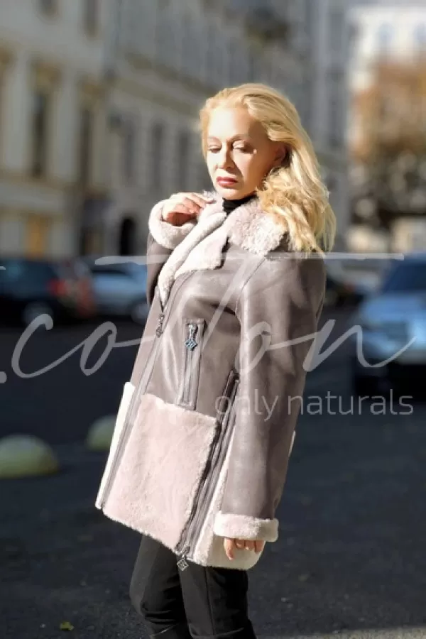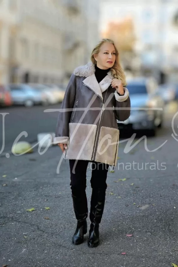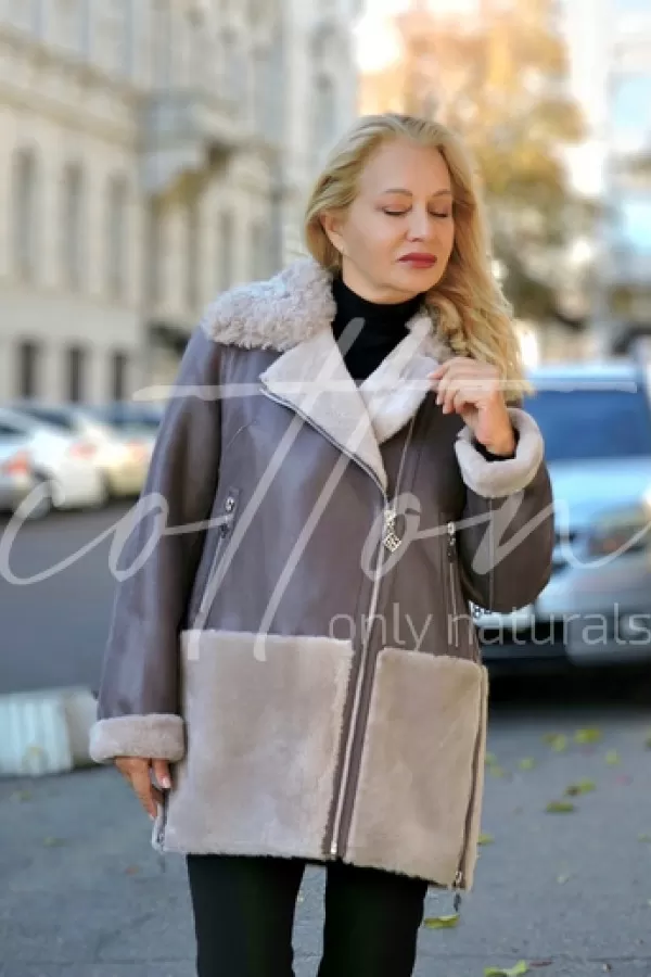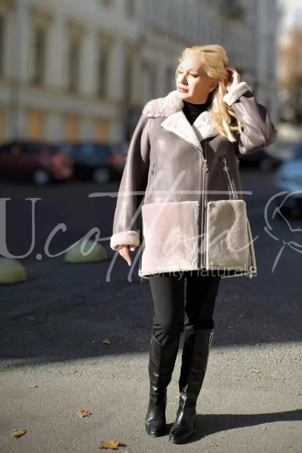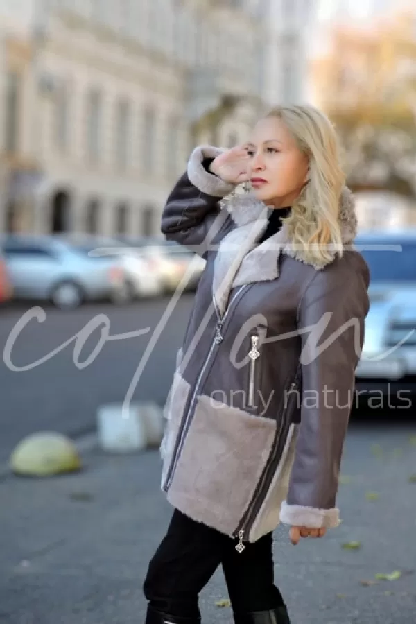 Дублянка, дубляна куртка (модель 595) від бренду U.Cotton - розкішне поєднання преміальної екошкіри з екохутром різних текстур - ніжного гладенького оксамиту на основі і привабливого астрагану на комірі.