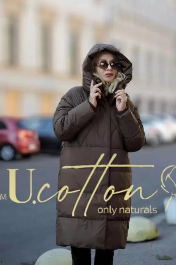 Подовжене зимове пальто (модель 9109 від U.Cotton) в кольорі Camel (насичено-брунатному, коричневому), а також представлене в чорному.