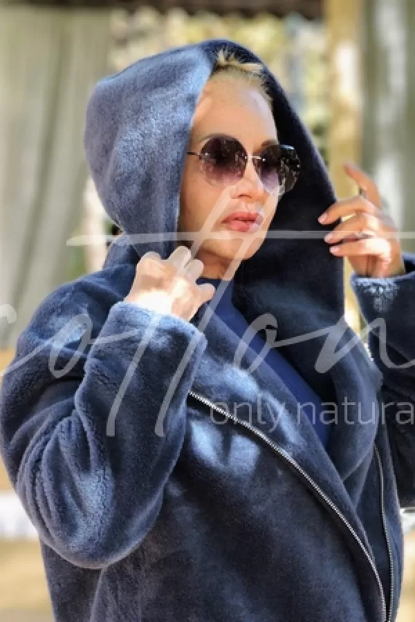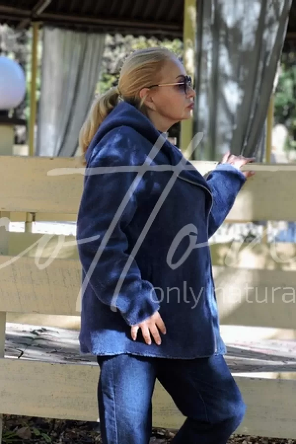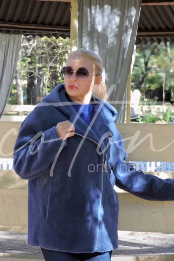 Косуха-напівшубок з австралійської вовни (шерсть) сіро-синя Dark Blue