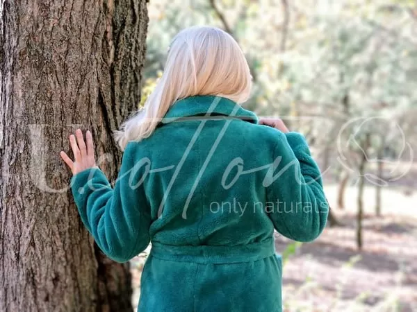 Ця казкова шуба того унікального інтенсивного, але природнього кольору, який в українській мові називається лазуровим, а європейці кажуть turqoise (туркуаз), але словами все одне не передати глибину і враження.