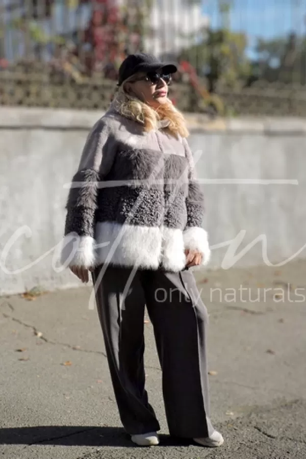Шубка (напівшубок) двостороння зі скомбінованого преміального екохутра Попеляста Троянда